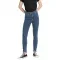 본격적인 빈티지 느낌의 씻겨 진 낙관적 블루 하이 스트레치 데님.