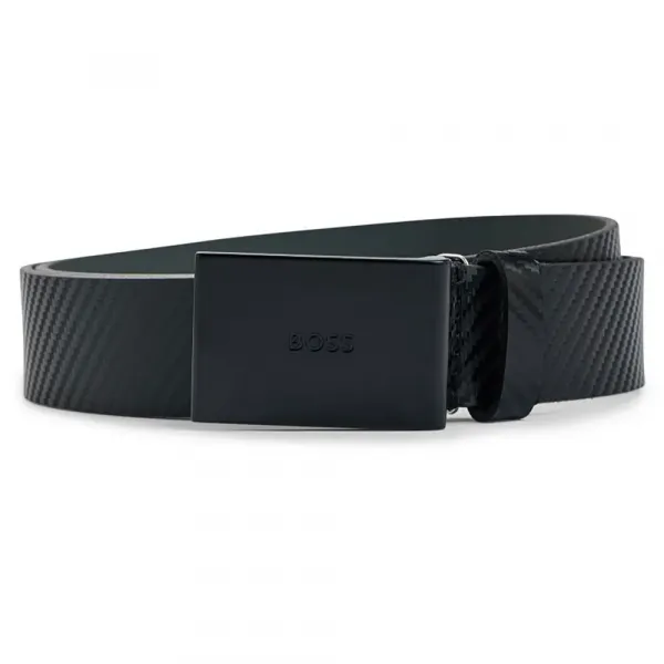 5cm 벨트는 BOSS 로고 디테일이 있는 매트 블랙 하드웨어의 플레이트 버클로 고정됩니다.