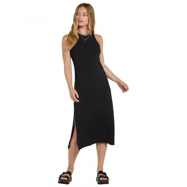이 민소매 미디 드레스는 다재다능한 디자인의 걸작입니다.