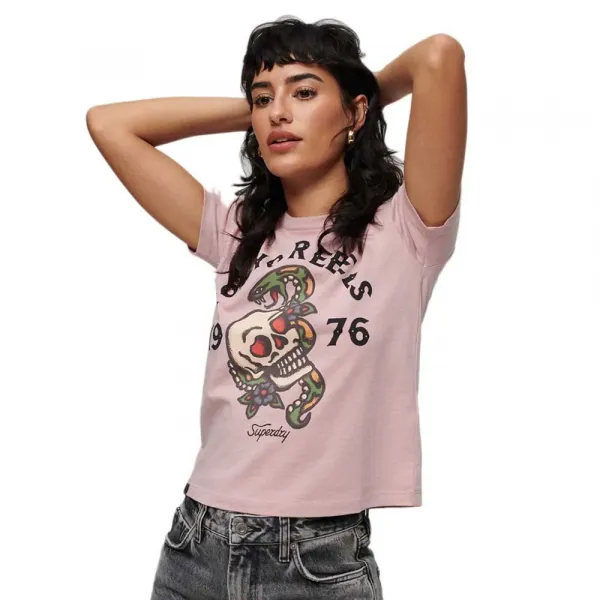 - 크루 넥- 짧은 소매- 그래픽 인쇄- 슈퍼드라이 탭명세서:- 소재: 면 100%케어:- 표백제: 표백제 사용 금지-건조: 회전식 건조하지 마십시오- 드라이클리닝: 드라이클리닝 금지- 철: 철 - 낮음- 세탁: 기계세탁 - 찬물(30°C)