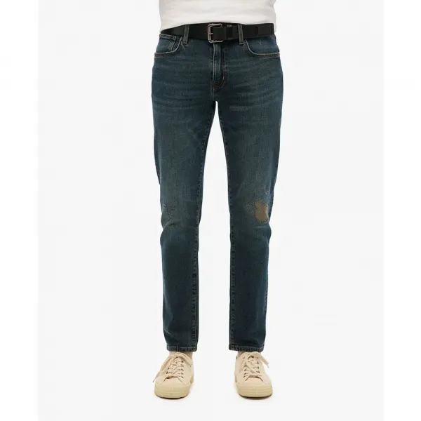 버튼 및 스냅 단추 여밈, 벨트 고리, 앞면 포켓 2개, 코인 포켓, 뒷면 포켓 2개, 빈티지 Superdry 패치, 디스트레스드 디테일.