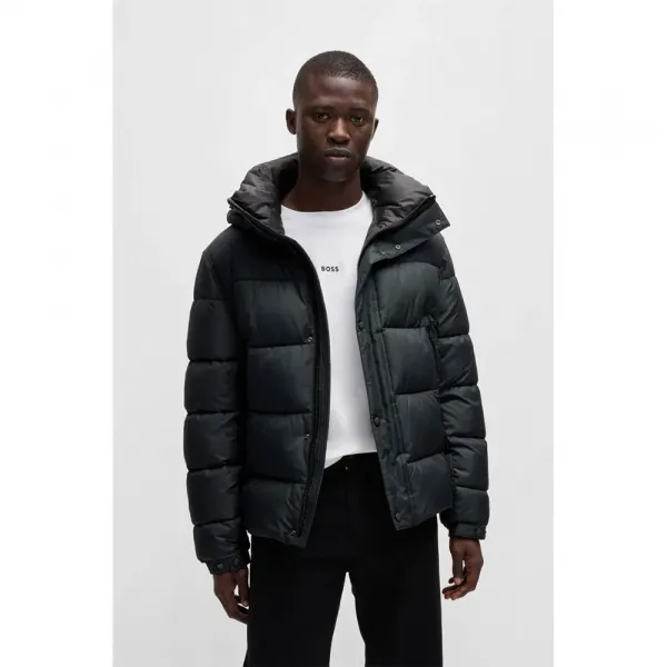 대비되는 광택 안감으로 마감된 후드와 밑단.