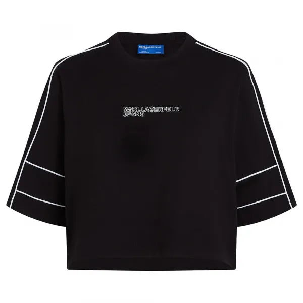 기술 사양: 소재: 프리미엄 면 길이: 크롭 네크라인: 라운드넥 소매: 반팔 디테일: 칼라 및 커프스 대비 파이핑 브랜딩: 가슴에 KARL LAGERFELD JEANS 스탬프 로고 성별: 여성 스타일: 미니멀리스트, 컨템포러리