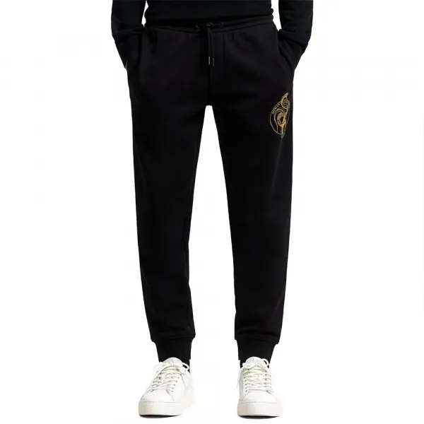 왼쪽 다리에 아르마니 익스체인지 매크로 로고 호일과 스네이크 장식.
