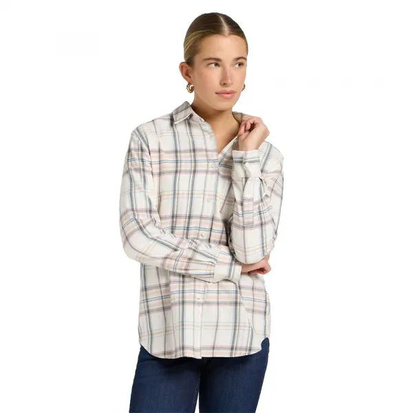 이 스타일은 부드러운 100% 면 플란넬 원단으로 제작되었으며, 블루, 핑크, 에크루 색상이 살짝 가미된 체크 무늬인 저희 플럼베리 플래드 패턴으로 마감되었습니다.