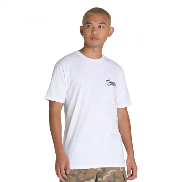클래식 핏의 반팔 크루넥 티셔츠로, 앞면에는 스크린 프린팅된 반스® 로고, 뒷면에는 레트로 와플 하우스 그래픽과 반스 창립일이 있습니다.