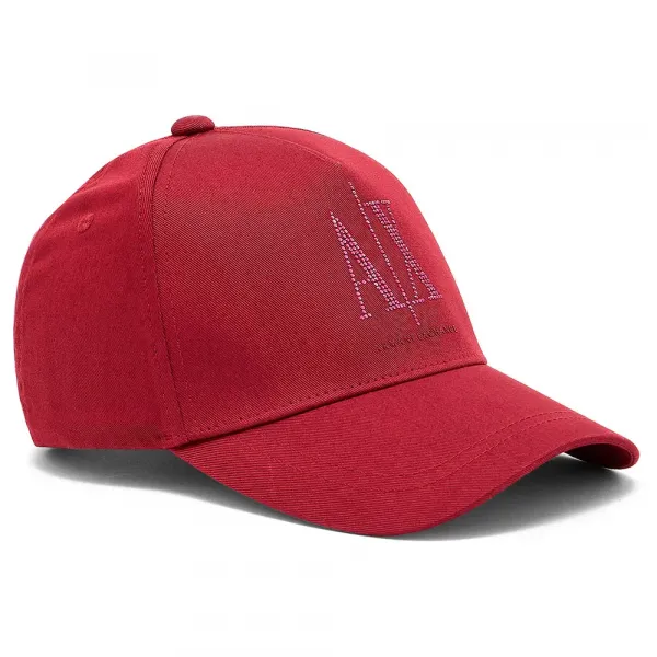 모자의 주요 특징은 눈부신 스트라스 크리스탈로 정교하게 표현되어 모든 움직임에 빛을 발하는 인상적인 Armani Exchange 로고입니다.