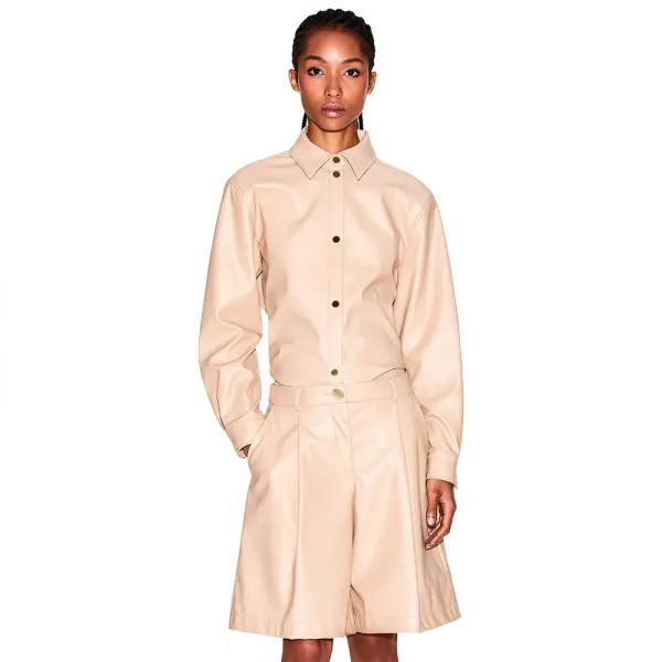 메탈 버튼 잠금과 전면 사선 포켓.