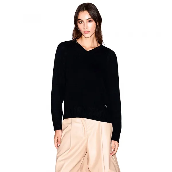 래글런 소매와 루즈핏의 브이넥 풀오버.
