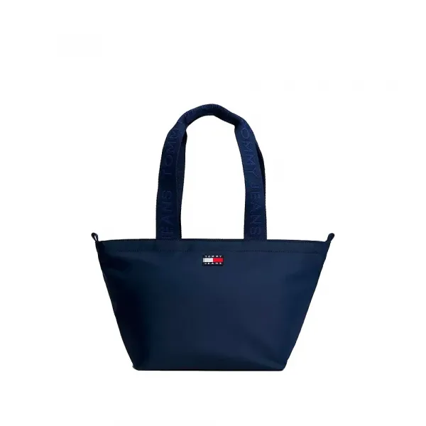 이 블랙 데일리 에센셜 미니 토트는 컴팩트한 실루엣과 로고 웨빙 핸들이 결합되어 있어 캐주얼한 일상 휴대에 적합합니다.