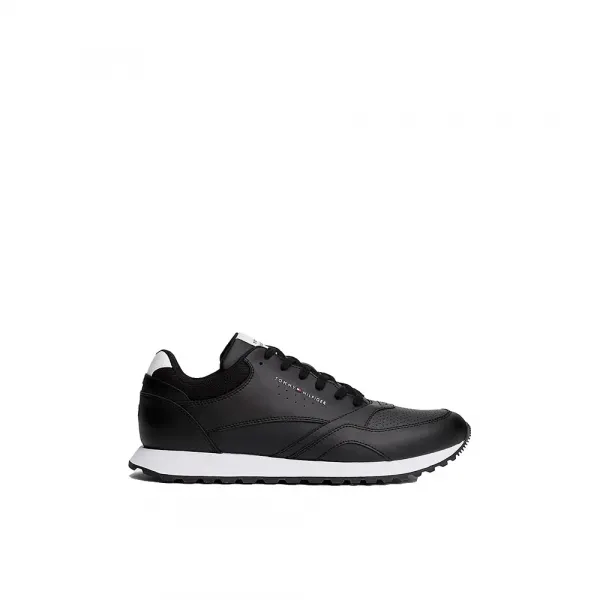 부드러운 가죽 마감과 스포티한 실루엣의 조합은 이 트레이너를 놀랍도록 다재다능하게 만들어주며, 편안함과 세련됨 사이의 간극을 손쉽게 메워줍니다 기술 사양: 갑피 소재: 프리미엄 가죽 및 폴리우레탄 혼합 밑창: 뛰어난 쿠셔닝을 위한 경량 EVA (에틸렌 비닐 아세테이트) 안감: 부드러운 직물 잠금 방식: 전체 레이스업 시스템 주요 특징: 라운드 토, 패딩 처리된 칼라, 시그니처 타미 힐피거 브랜딩, 대비되는 측면 스트라이프 디테일 대비되는 측면 스트라이프와 타미 힐피거 브랜딩이 특징인, 90% 가죽과 10% 폴리우레탄으로 제작된 블랙 남성용 러닝 스니커즈.