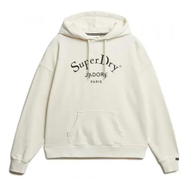 가볍게 기모 처리된 안감과 가슴 부분의 장식적인 텍스트가 돋보입니다.