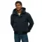 - 지퍼 및 스냅 단추로 잠그는 후드와 골지 밑단.