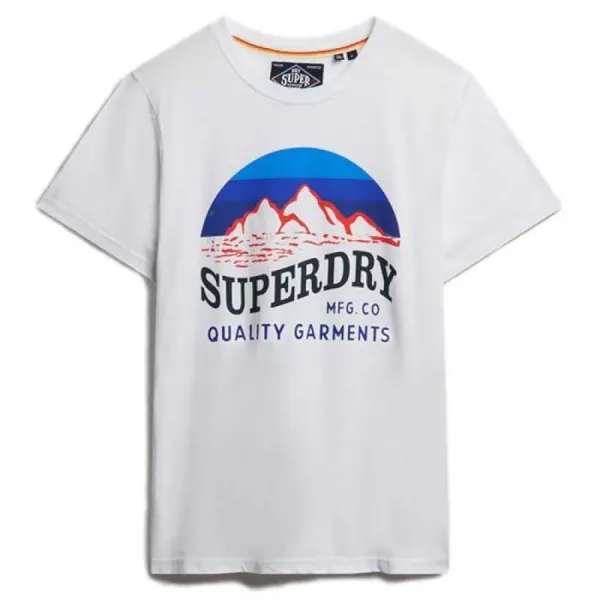 소매: 반팔 넥라인: 골지 크루넥 소재: 면 그래픽: 가슴 부분에 고품질 "Great Outdoors" 프린트 그래픽 브랜딩: 시그니처 Superdry 로고 탭