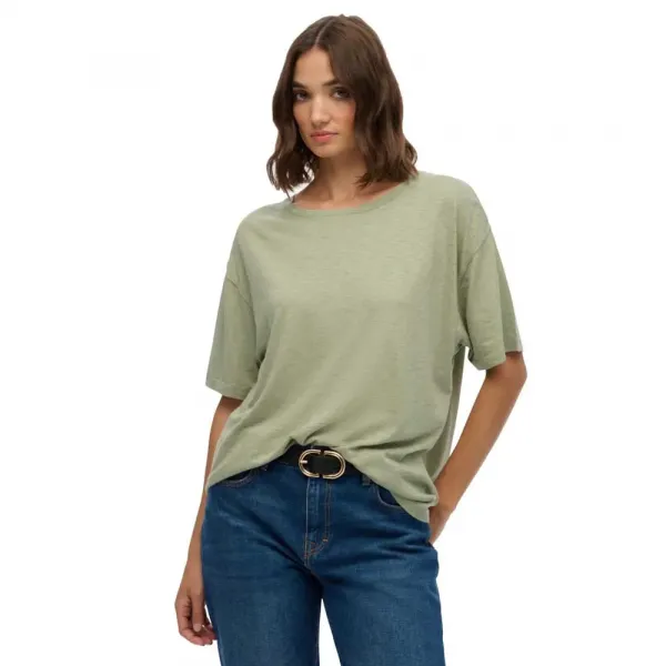 - 드롭 숄더가 있는 스쿱 넥라인.