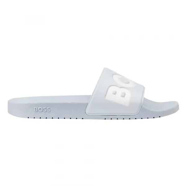 갑피에 큰 로고 디테일이 있는 슬라이더.