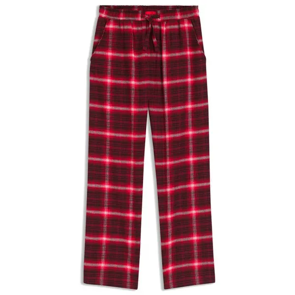 클래식한 체크 패턴과 드로스트링 허리 밴드의 로고 라벨이 특징입니다.