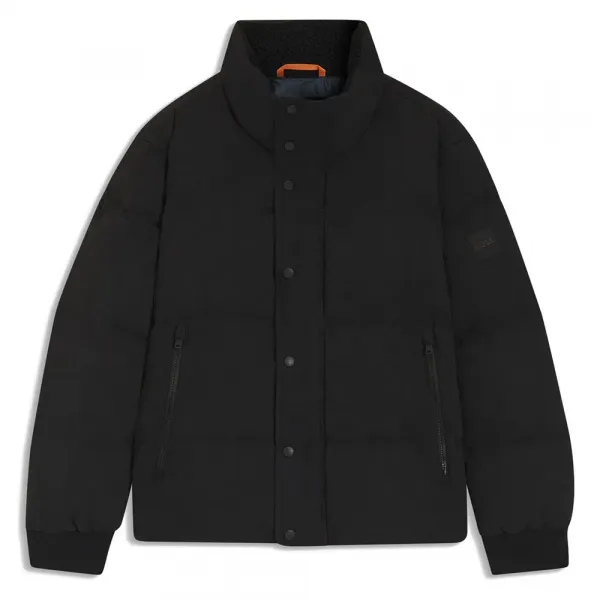 자체 원단 차고 디테일이 있는 스테이트먼트 지퍼 포켓.