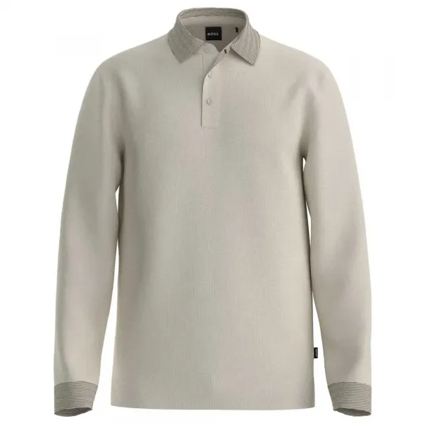 편안한 주말 외출을 위해 어두운 데님과 함께 매치하거나, 비즈니스 캐주얼 앙상블을 위해 스마트 바지와 결합하거나, 저녁의 세련된 여가를 위해 스포츠 코트 안에 레이어드하세요 --- 남성 의류 폴로 셔츠 BOSS Pado Polo 특징: 네크라인: 폴로 칼라 소매 길이: 긴 소매 사양: 소재: 100% 울