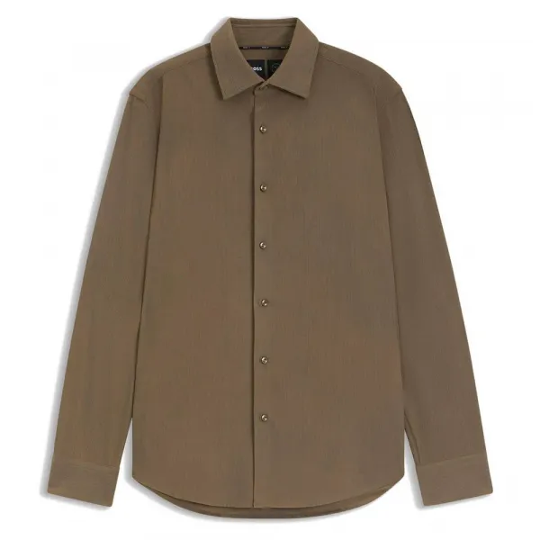 특징:- 레귤러 핏- 켄트 칼라- 앵글 커프스사양:- 소재: 100% 폴리에스터 (재활용 소재 65%)세탁 방법:- 찬물에 세탁- 표백제 사용 금지- 회전식 건조 금지- 낮은 온도에서 다림질- 드라이클리닝 금지