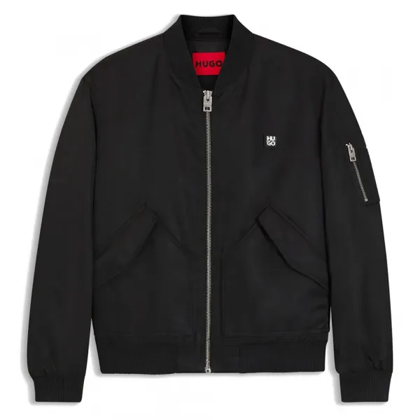 지퍼 잠금 기능이 있는 이 HUGO 남성복 보머 재킷은 다음과 같은 특징을 가지고 있습니다.