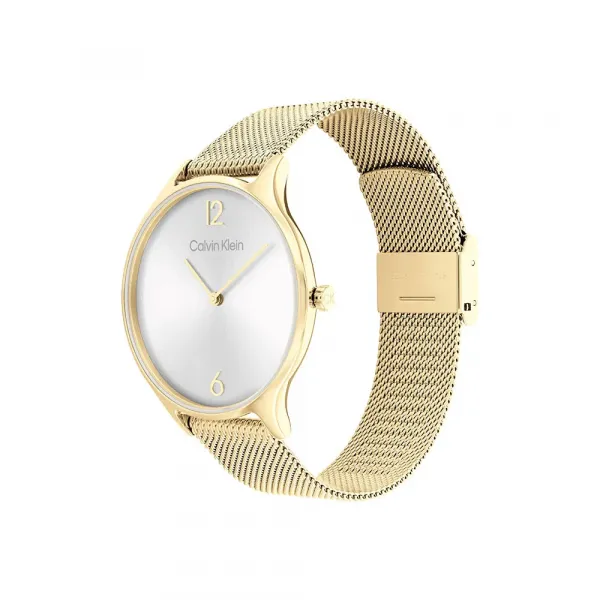 38mm 스테인리스 스틸 케이스, 옐로우 골드 이온 도금, 은백색 무지개빛 다이얼, 옐로우 골드 이온 도금 밀라네즈 메시 브레이슬릿.