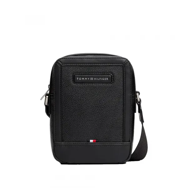 조절 가능한 숄더 스트랩, 외부 포켓 및 전면 Tommy Hilfiger 로고가 있는 친환경 가죽으로 만든 남성용 미니 리포터.