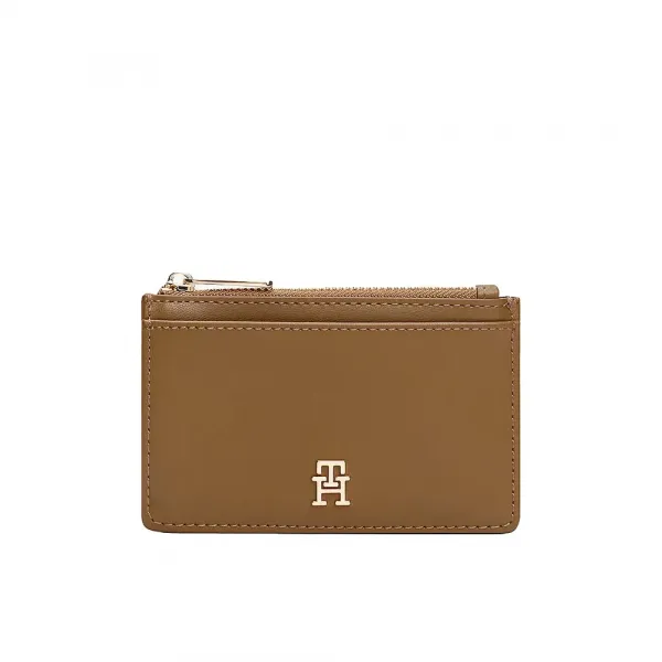 메탈릭 Tommy Hilfiger 로고가 있는 친환경 가죽 여성 카드 홀더.