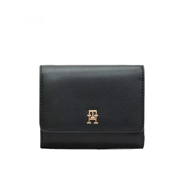 메탈릭 Tommy Hilfiger 로고가 있는 블랙 에코 레더 여성 지갑.