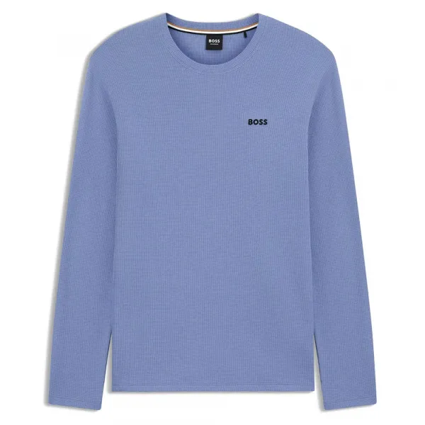 와플 구조의 이 상의는 레귤러 핏으로 재단되었습니다.