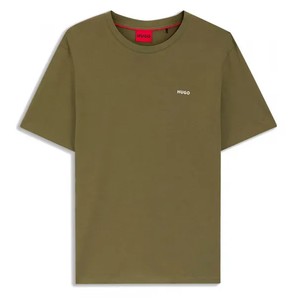 가장 눈에 띄는 특징은 HUGO의 시그니처 레드 컬러로 된 상징적인 사각형 로고 패치가 왼쪽 가슴에 깔끔하게 부착되어 있다는 점입니다.
