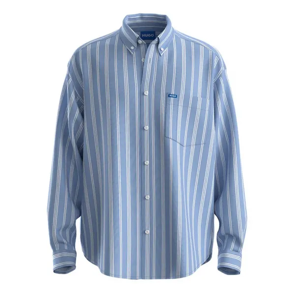 오버사이즈 핏으로 재단되었으며, 버튼다운 칼라가 특징입니다.