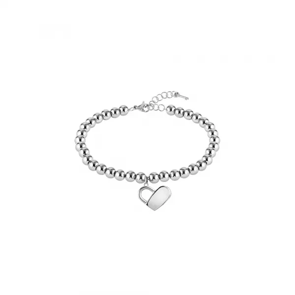 오픈 하트 참이 있는 스테인리스 스틸 비드 팔찌.