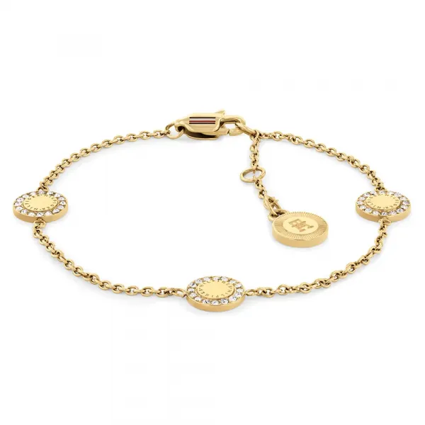 이 필수적인 아이템을 당신의 액세서리 컬렉션에 추가하여 타미 힐피거만의 독보적인 우아함과 품질로 당신의 룩을 채워보세요 기술 사양: 모델 번호: 2780905 제품 유형: 팔찌 주요 소재: 스테인리스 스틸 마감: 광택 옐로우 골드 톤 도금 주요 특징: 크리스탈 세팅 원형 참 체인, 중앙 로고 요소 잠금 유형: 랍스터 걸쇠 카테고리: 액세서리 하위 카테고리: 주얼리