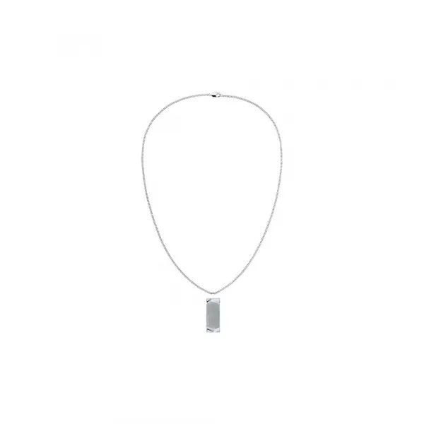 이 특정 제품은 직사각형 중앙 모티프가 있는 스테인리스 스틸 목걸이입니다.