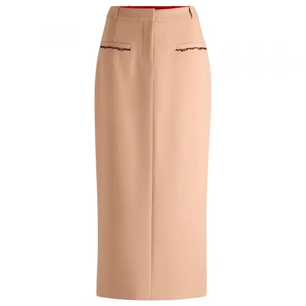 세련된 미디 길이와 깔끔하고 곧게 떨어지는 핏은 전문적인 사무실 환경에서 우아한 저녁 모임까지 자연스럽게 어울리는 돋보이는 실루엣을 연출합니다.