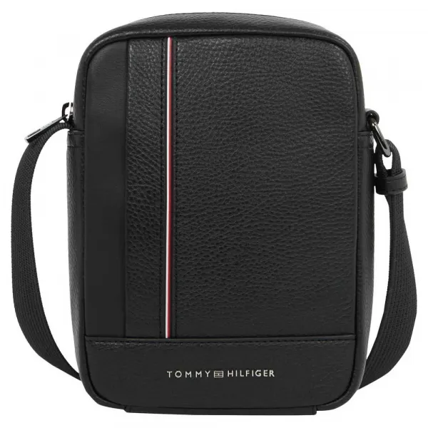 조절 가능한 숄더 스트랩, 외부 포켓 및 전면의 Tommy Hilfiger 로고가 있는 친환경 가죽으로 만든 남성용 미니 리포터.