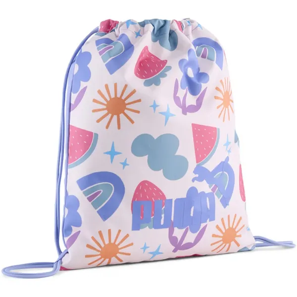 장난기 넘치는 올오버 프린트, 조임끈 개폐 방식, 그리고 이중 기능 어깨 스트랩이 특징입니다.