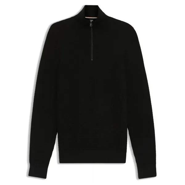 쌀쌀한 날씨에 겹쳐 입기 좋은 이 BOSS 남성용 스웨터는 스트레이트 핏과 쿼터 지퍼가 특징입니다.