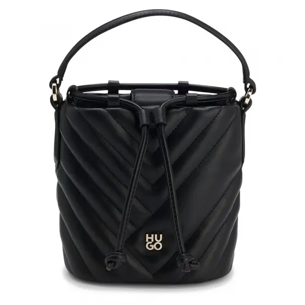 특징: - 잠금 방식: 드로스트링 클로저 - 내부 오픈 포켓 1개 - 하드웨어 마감: 라이트 골드 하드웨어 - 메탈 레터 - 탑 핸들 사양: - 소재: 폴리에스터 60% (재활용), 폴리우레탄 40% (재활용 20%) - 안감: 폴리에스터 100% - 겉감: 폴리에스터 60% (재활용), 폴리우레탄 40% (재활용 20%) - 측정: 16x11 x 16cm
