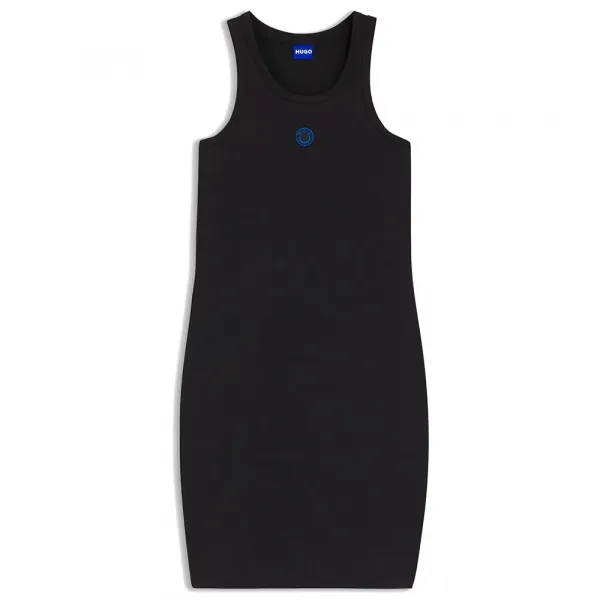 가슴에는 행복한 HUGO 로고 배지가 있습니다.