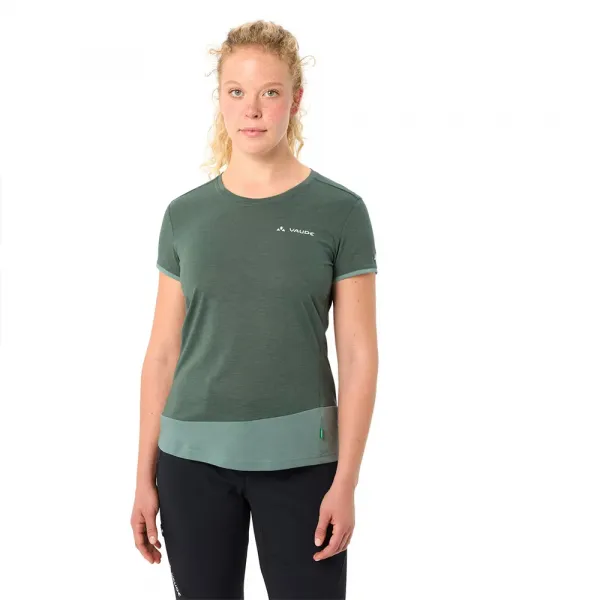 VAUDE Green Shape 라벨은 지속 가능한 소재로 만든 친환경 기능성 제품을 상징합니다