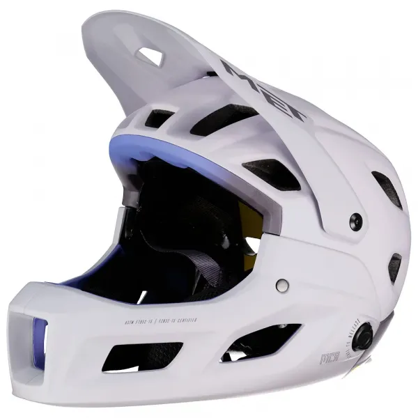 이 헬멧은 두 가지 세계를 하나로 완벽하게 결합하여, 공격적인 하강에 필요한 풀페이스 보호 기능과 길고 힘든 오르막길을 위한 오픈페이스 헬멧의 가벼운 통풍 기능을 제공합니다.