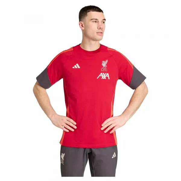 리버풀 FC 선수들이 리그 경기를 위해 훈련할 때 착용하는 아디다스 트레이닝 웨어의 일부인 이 면 티셔츠는 경기장 밖에서 입도록 디자인되었습니다.