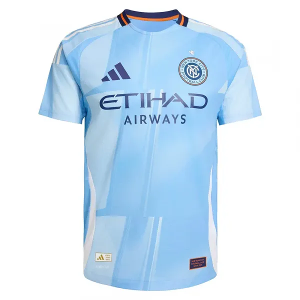 이 아디다스 뉴욕 시티 FC 홈 어센틱 저지의 역동적인 그래픽은 빅 애플의 솟아오른 건물들의 유리와 강철에 반사된 푸른 하늘 조각들을 담아냈습니다.