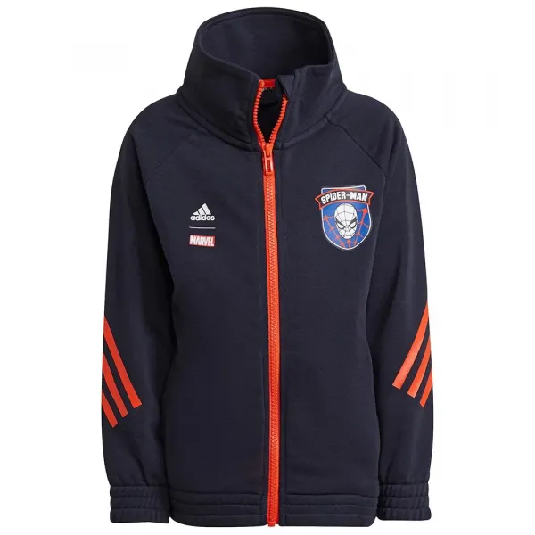 아이가 좋아하는 슈퍼 히어로는 누구입니까? 이 아이들의 adidas 재킷 뒷면에 크고 대담한 거미줄 그래픽은 의심의 여지가 없습니다.