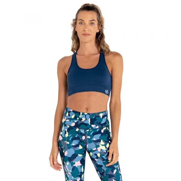 피부에서 수분을 제거하는 Q-Wic 기능성 원단의 심리스 미디엄 임팩트 스포츠 브라.