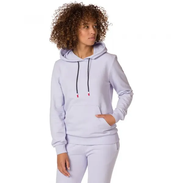 여성용 로고 후드 스웨트셔츠는 부드러운 코튼 플리스 소재로 캐주얼한 느낌을 주며, 다른 후드와는 차별화되는 마감 디테일이 있습니다.