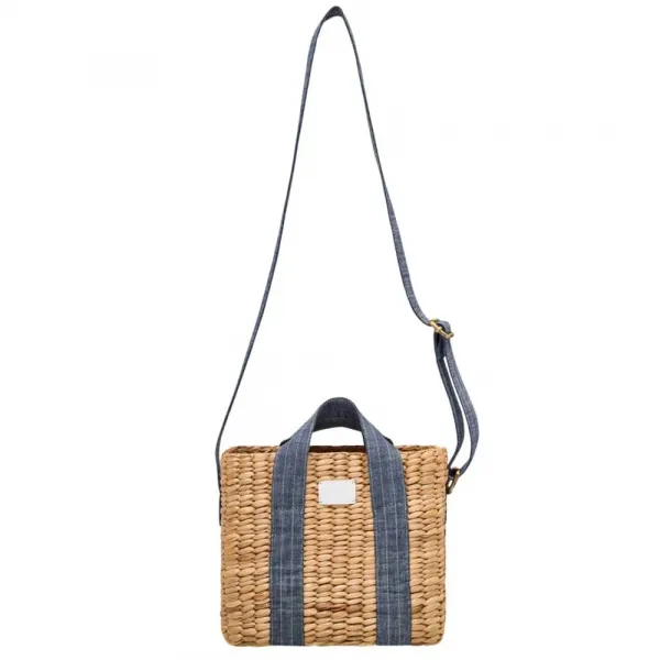 밀짚 100%, 밀짚, 잠금장치 없음, 크로스백, PU 라벨, 견고한 디자인, 데님 스트랩.