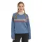 빈티지하고 낡은 느낌을 더해주는 디스트레스 스트라이프 디자인이 이 긴팔 티셔츠의 가슴과 팔 부분에 가로질러 있습니다.
